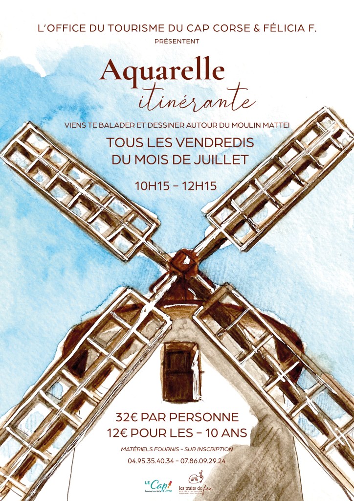 L’ office de tourisme du Cap Corse avec Félicia F. vous proposent : « Aquarelle itinérante autour du Moulin Mattei »