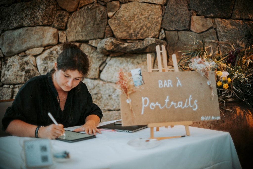 Je suis Félicia F., designer et illustratrice basée dans le Cap Corse. Je vous propose une expérience unique sur l’île : le Bar à Portraits.